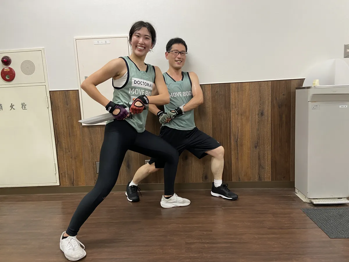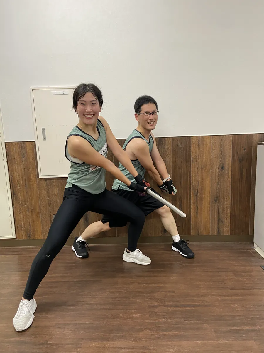 プラストレーニングのジャンプランジ & アッパーやサイドキック & プッシュキックは中川さんのフォームをお手本に実施。