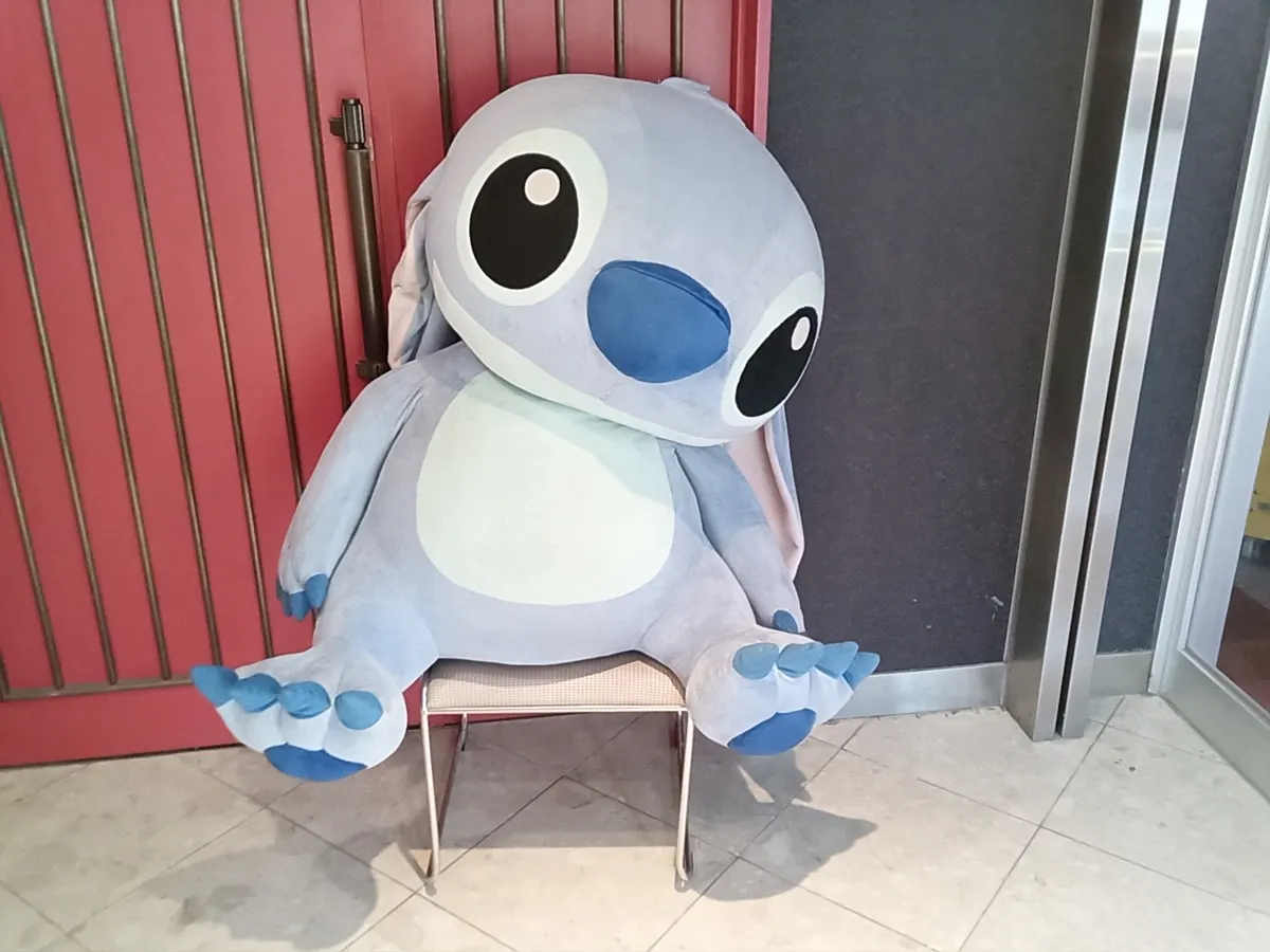 ゲームコーナーの目の前でスティッチが座っています。