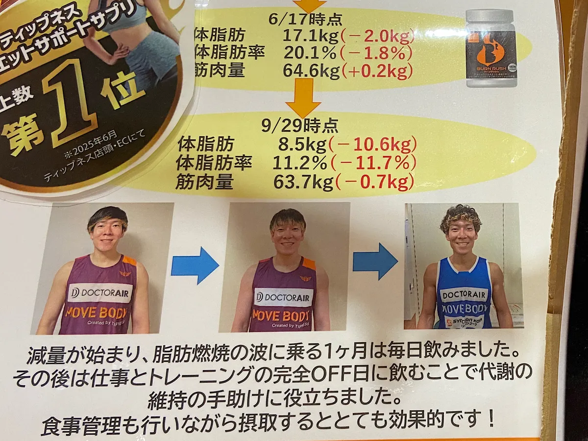 現在、バーンラッシュがキャンペーン中ですが、百瀬さんもバーンラッシュを摂られているそうで、ここ数ヶ月の変化が掲載されています。