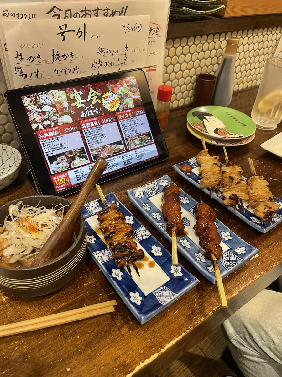 前回食べて美味しかった馬刺しを始め、でっかい唐揚げやもつ煮、串もの、、どれも美味しいんです🤤(このお店はフジサワプラザ♪)