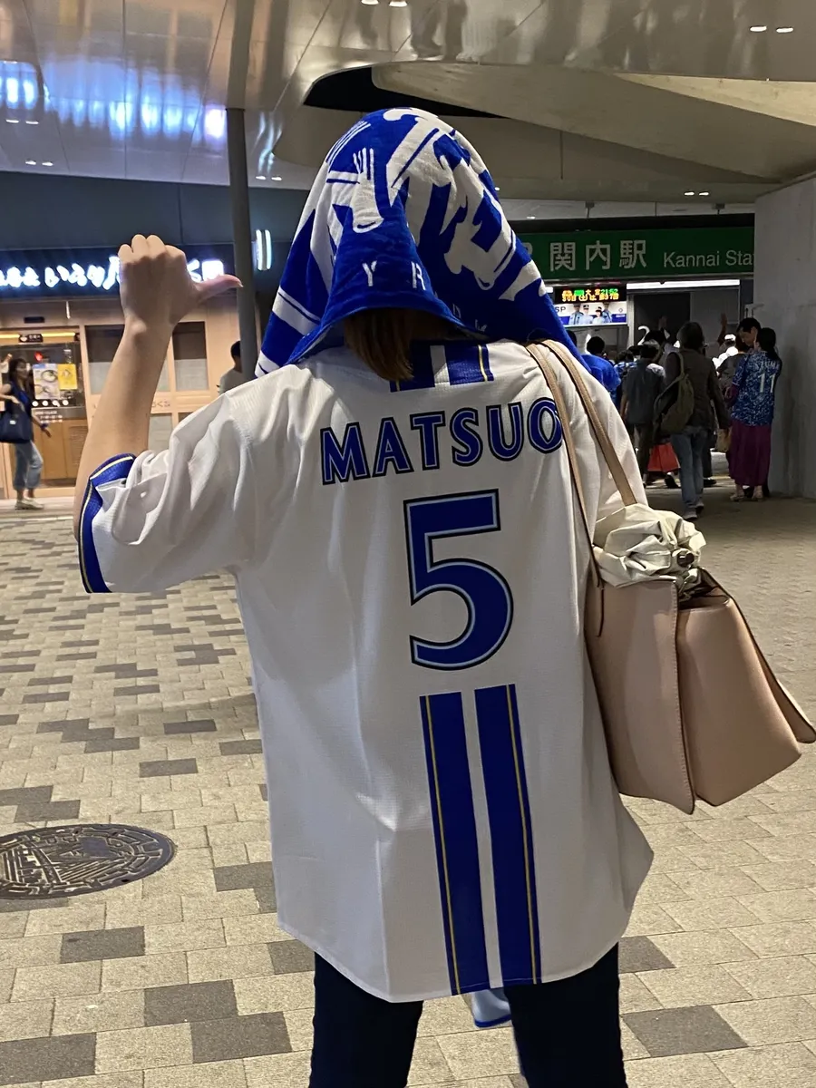 水曜日に参戦し座席に着いた後、間違えてテイクアウトにしてしまった同僚ちゃんと一緒に席をたった私。商品を取りに行きつつ、ユニホーム着て帰ったら面白いと思い、しれっと松尾汐恩のユニホーム買いました👏