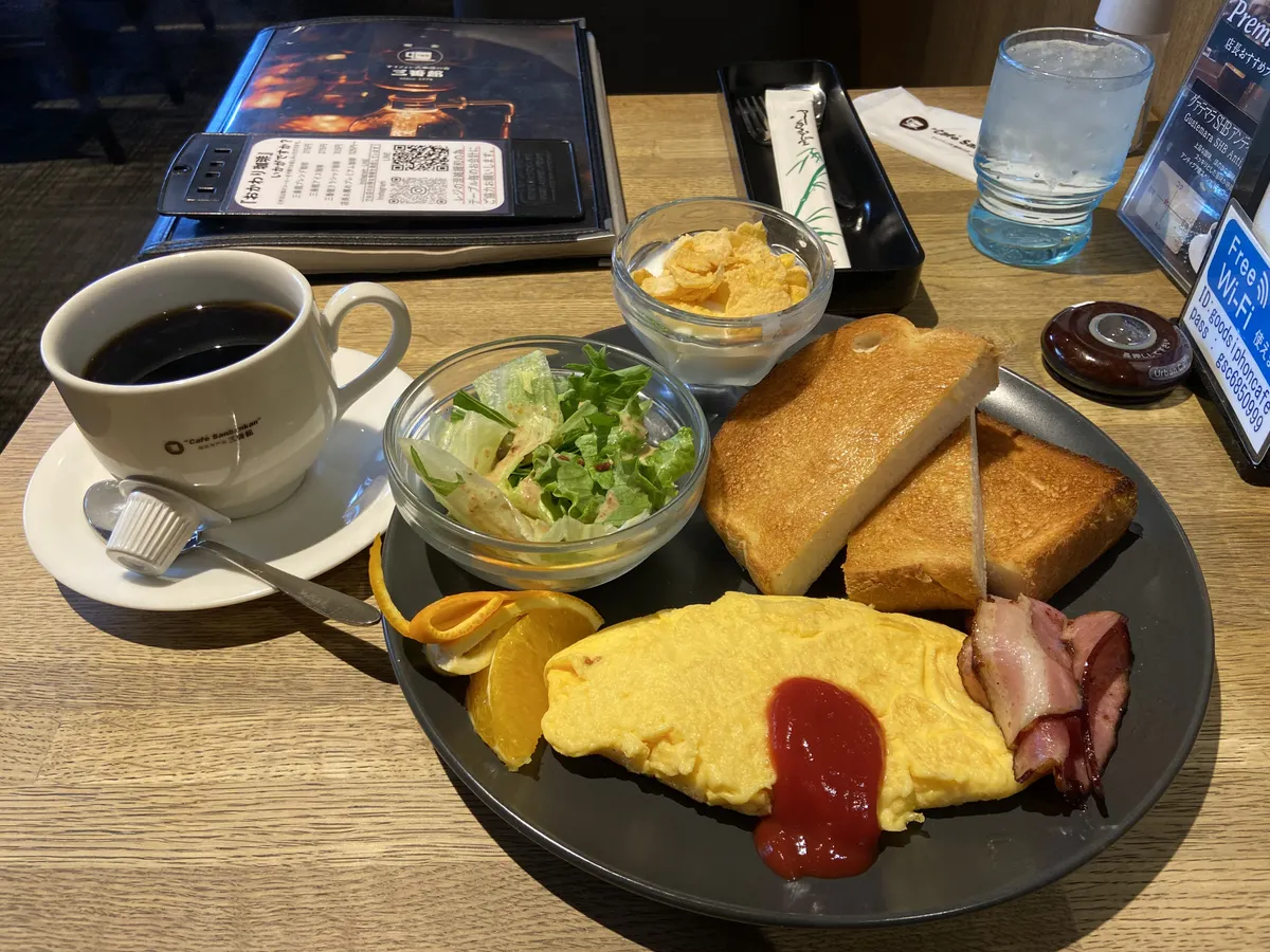 まずは阪急高槻市駅のすぐ前にある「三番館」で朝食を頂きました。