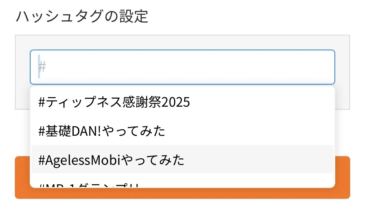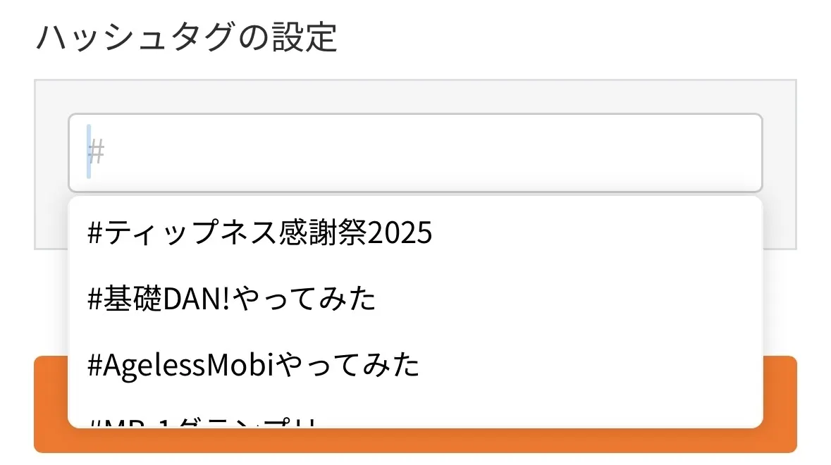 ハッシュタグは、ポジティッパーの集いまたはポジティップ写真館のハッシュタグの設定からドロップダウンでお選びください。