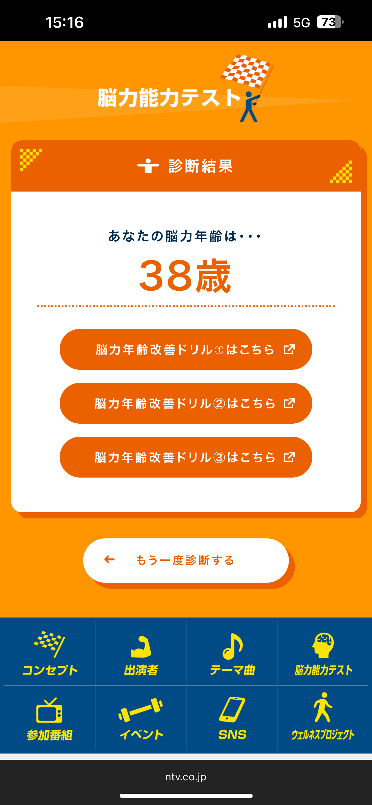 トップ > ポジティップ写真館 > カラダWEEK > 脳力能力テストやってみました‼️ ひろみん 2025/11/09 22:36 脳力能力テストやってみました‼️ 今日、店舗でやってみました。 『マッチング靴下』は、いつも家で洗濯物で実践してるので、練習なしで18歳以下✌️ 『ちぐはぐハンド』は、一番苦手そうだったので、昨日、ティップネスの湯船と、テスト直前にひたすら練習して、18歳以下💪 最後の『数字でポン』は、3の倍数はパー✋とだけ暗記したけど、目で見てやるのだと思っていたら、耳で聞くとは知らず、パニックになり、60歳でした😱 総合結果は38歳した‼️ 予想よりは若くてホッとしました😌 終わってから、ドリンクいただきました。 ありがとうございました😊 脳力能力テスト いいね 共有する 共有する X facebook LINE リンクをコピー コメントする 1 件の返信 (新着順) ミュートしたユーザーの投稿です。 投稿を表示 Nドライバー 2025/11/10 00:03 ドリンク付き!良いですね~! 38歳!って数字出るんですね! てっきり30、40、50代と 区切りある数字だけかと思いました😅 いいね 返信する ミュートしたユーザーの投稿です。 投稿を表示 ひろみん 2025/11/10 00:44 Nドライバー 私も30代、40代、50代で出るものかと思い、測定してくださった五十嵐IRと一緒に探してみましたが、みつかりませんでした。 ドリンクは店舗オリジナルのプレゼントだったのですね😊ありがたいです🙏🏻 いいね 返信する