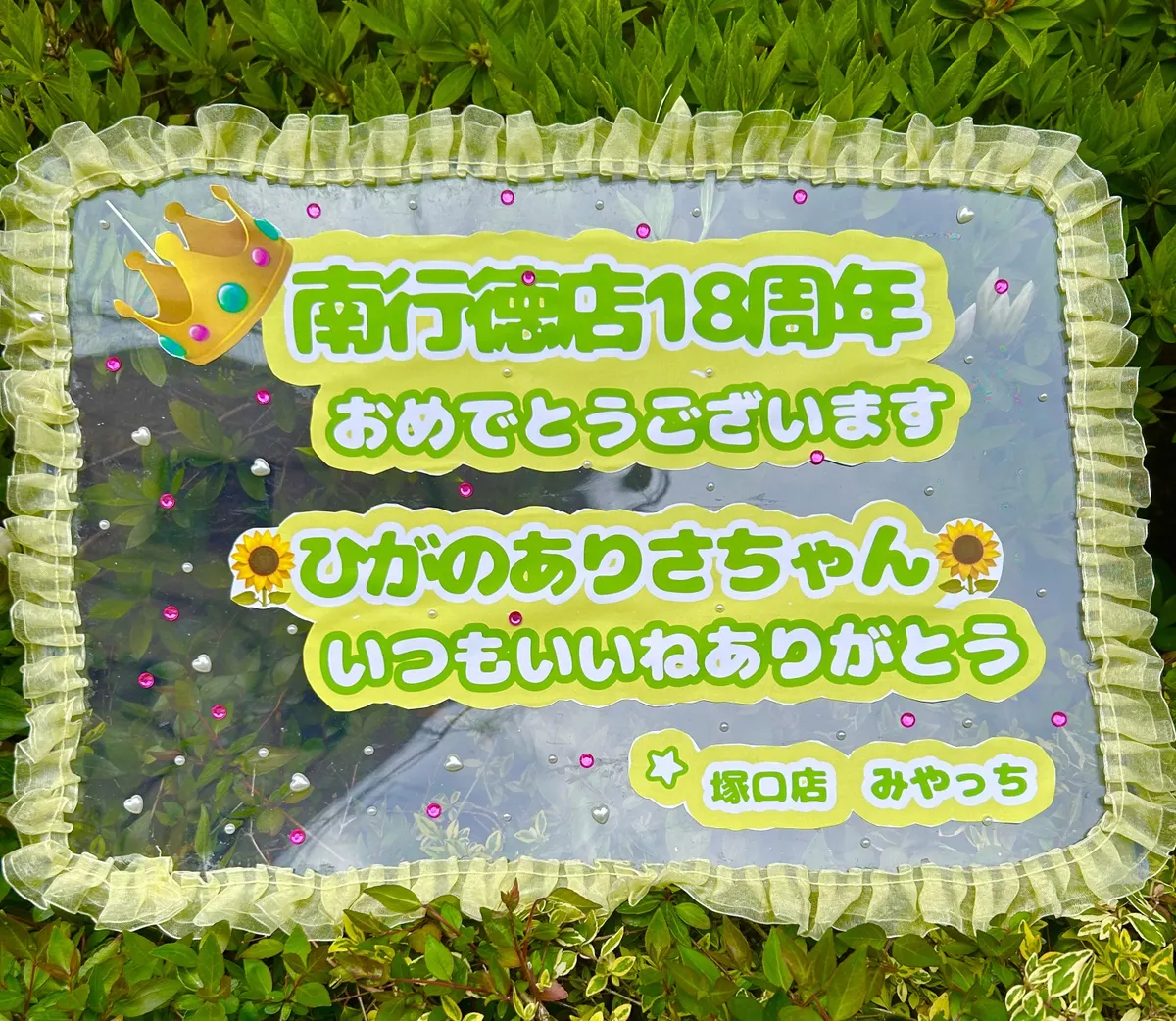 私は、南行徳店18周年のときに、このうれしさを応援グッズを作り思い込めて投稿した⬇️もちろん、ありさちゃんはすぐにコメントをくださった🥰🥰🥰