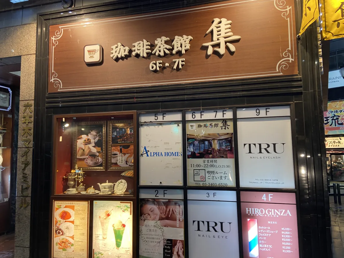 六本木通りの交差点で珈琲茶館 集というお店を見つけたので、こちらで夕食をとることにしました。