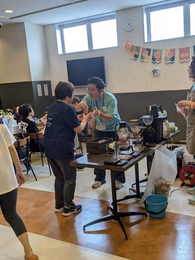 バリスタこと前原さんと杉浦支配人で皆様にコーヒーをお配りしておもてなししました!