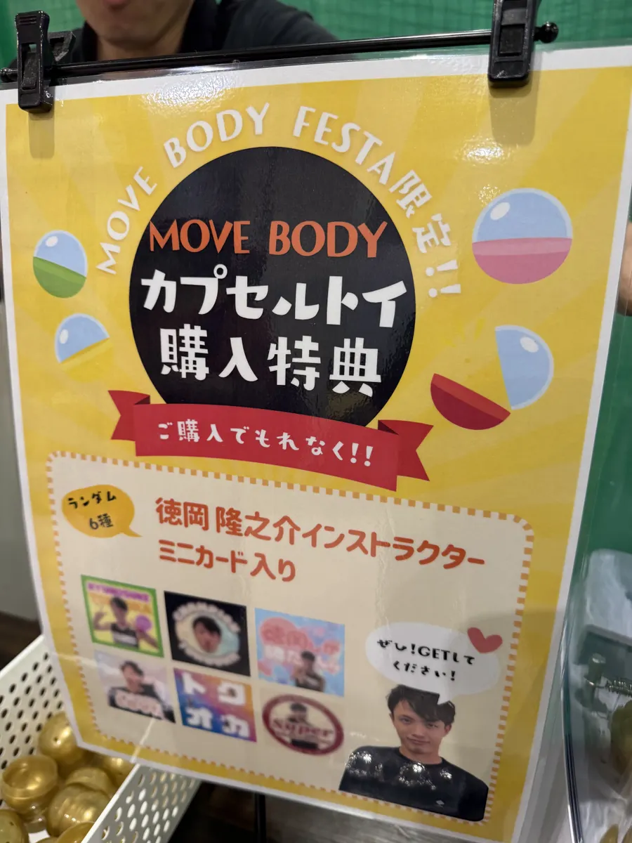 プールから上がって、風呂に入った後に例のMOVEBODY カプセルトイが‥。中身が徳岡IRのフォトメッセージ💳カード付き。