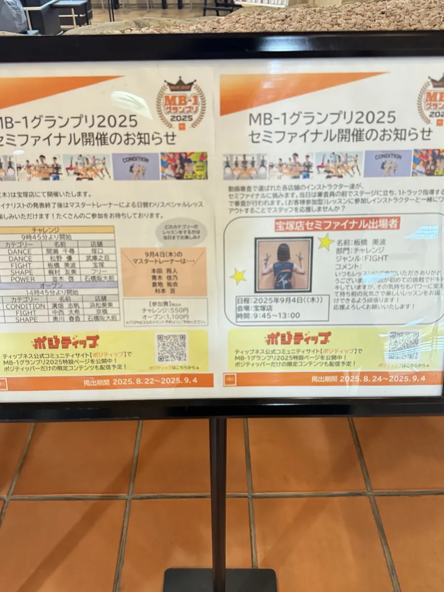 今日、私は夜勤明けなので塚口店に間瀬IRのレッスンを受けにいくのを自重してお風呂のみ。明日に控えたMB-1グランプリセミファイナルですが館内掲示がMB-1仕様になってから見ておらず‥👀