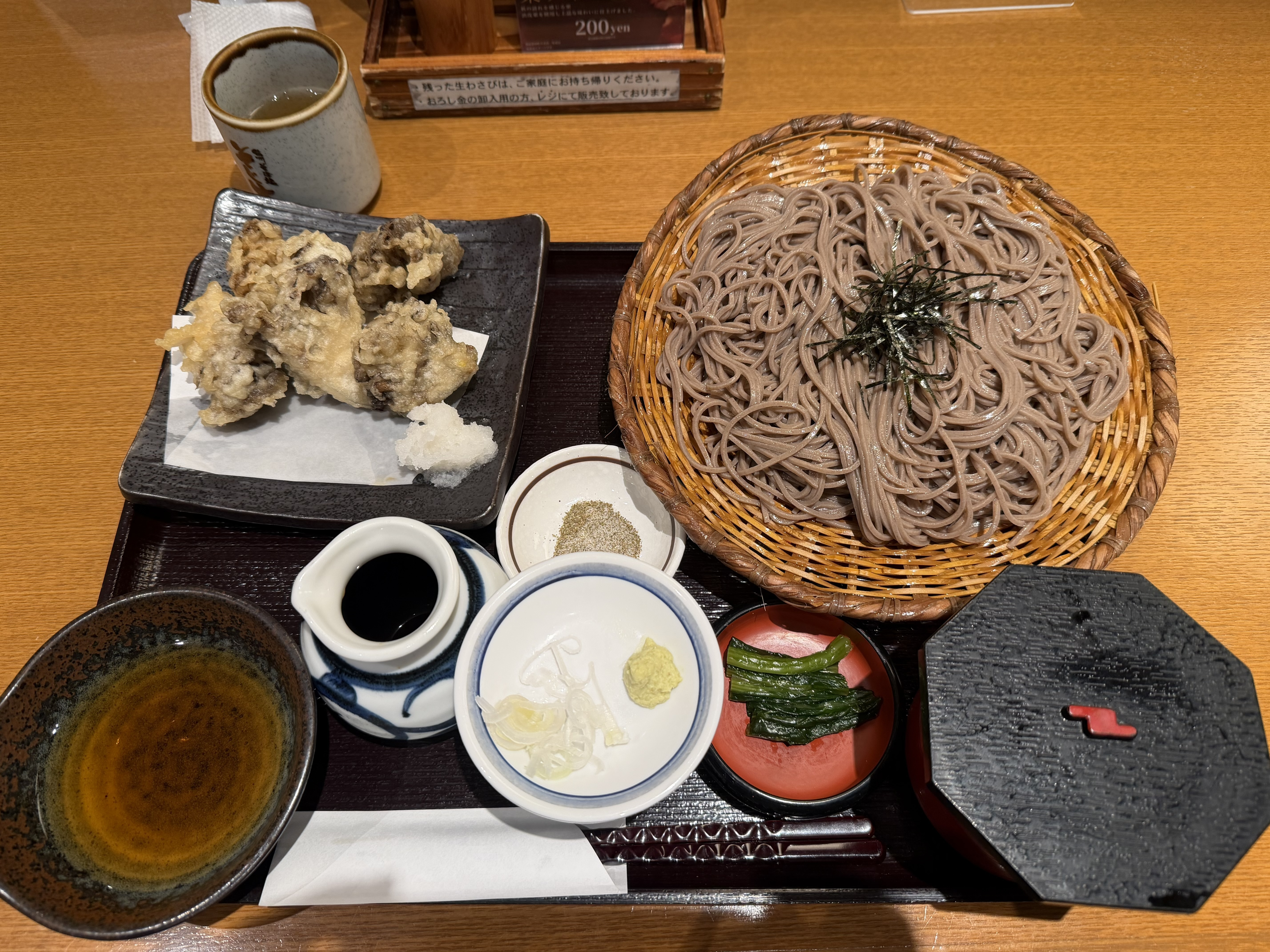 舞茸の天ぷらにざるそば。