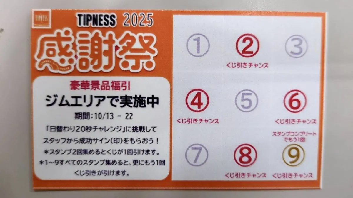 ただいまティップネスでは10月13日から10月22日まで感謝祭を行っています🎉