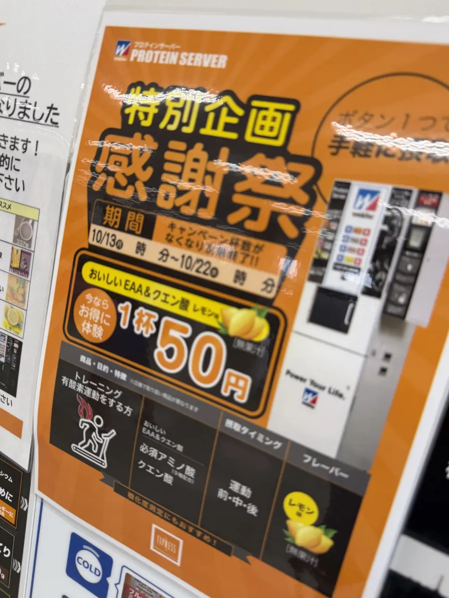 その後は期間限定の1杯五十円のプロテインでひと休憩‥