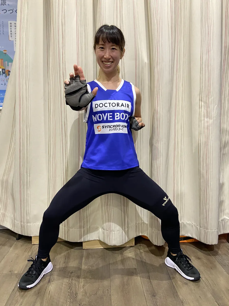 現在鶴見店で回せるガチャで当たる森インストラクターのカードのポーズはこのポーズだそうです。