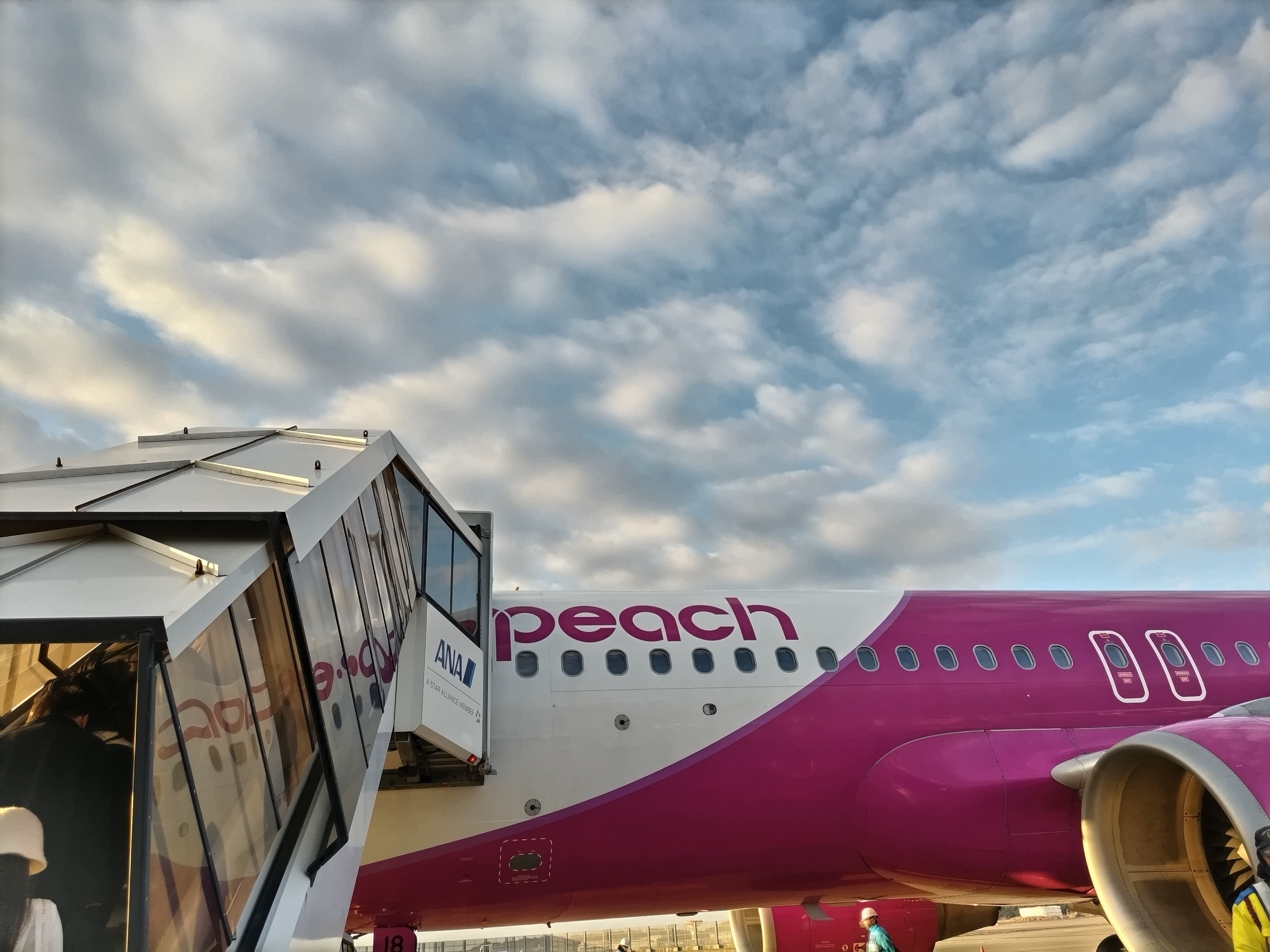 大阪までPeachエアーで行きます。電車改札口出てから搭乗まで40分。検査レーンが2つしかないから長い列だった