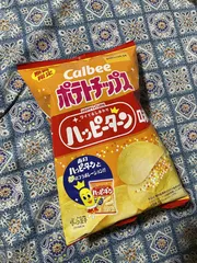 ポテチのハッピーターン味。 例の甘じょっぱい粉はポテチでも相性抜群👌 ビール🍺のお供に。