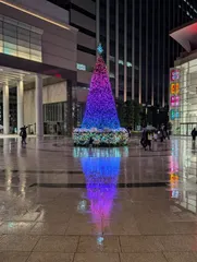東京は、雨の日曜日でした☔ クリスマスツリーのイルミネーション、雨に濡れた地面にもう一つ見えました🎄