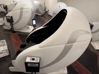 鴨居店についに新型マッサージチェアが導入されました!白くて綺麗でカッコいい! まるでユニコーンのコクピットみたい😆 無重力マッサージ試してみましたが、本当に浮いているような気持の良さでした!魂も地球の重量から解放されそうです😆