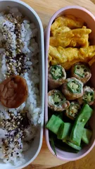 おはティッパー🙋☀️ 今日の献立昨日の★オクラの肉巻き大好評だったのでもう一度同じMENUです⤴️ ★オクラの肉巻き★モロッコインゲン★玉子焼き ポジティッパーの皆さま良い1日を⤴️