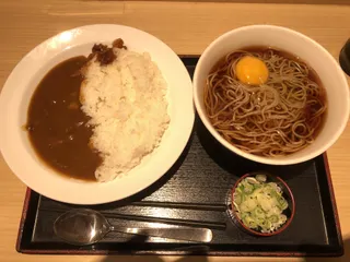 両方食べたい派‼️😊蕎麦&カレーセット!&生玉子トッピング❣️