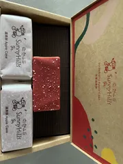 微熱山丘ファンの皆さまいらっしゃいいちごりんごケーキ開けました😋✨一気に食べてしまわないように頑張ってますピンクの高級いちごチョコと白いキラキラレモン味の雪を被ったいつものりんごケーキのドレスアップは甘いと酸っぱいの絶妙なバランスが本当に美味しい🎉クラッカー糸引いちゃう期間限定にふらっと行って逢えた