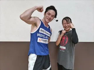久我谷隊長ーー!! 第一声は私が持っているバックを見て久我谷さんの「 あ、ポジティッパーさん!」でした。とてもソフトで爽やかな印象でした。レッスンは、一体感を大切にする楽しいものでパワーでの音楽が途中で2回も途切れちゃったのも御愛嬌ですね😄 ファイト終わったら写真をお願いしていたらレッスン終わってすぐに「どこ