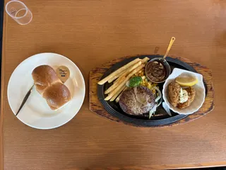 皆さんのごちそうに刺激されました 日替わり 超粗びきステーキバーグ&ジャンボフランク&サクサクコロッケしぼりたてモンブランSteak GUSTO