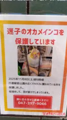 迷子のオカメインコちゃん 飼い主さんが見つかりますように… 南行徳の皆さん情報あったら教えてください⤴️